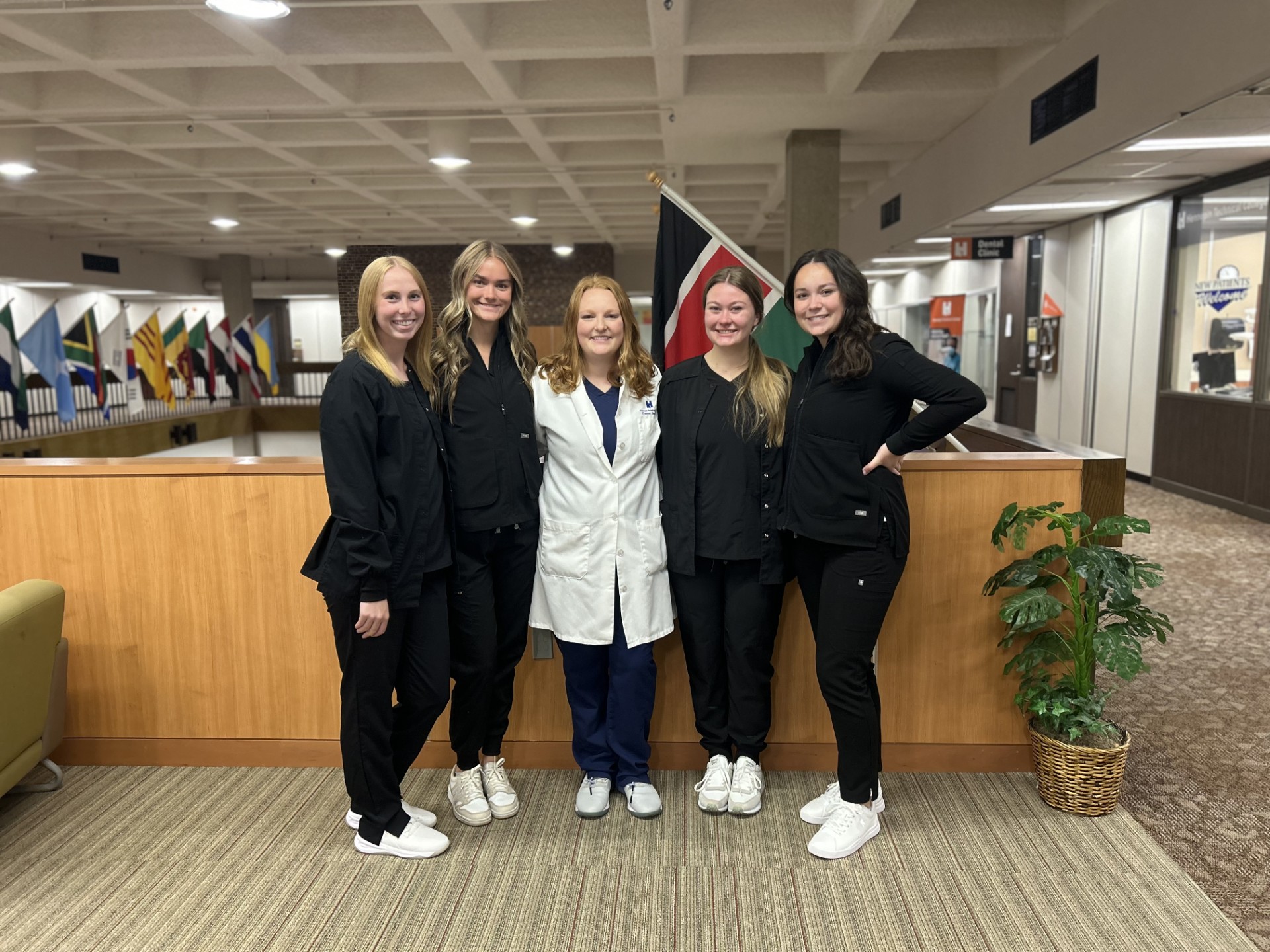Natosha Meyer - Vice President, Maria Wendorf - President, Susan Thaemert - Faculty Advisor, Lauren Lanzi - Past Treasurer, Joe Bauer - Treasurer, (not pictured) September Parajul - Secretary